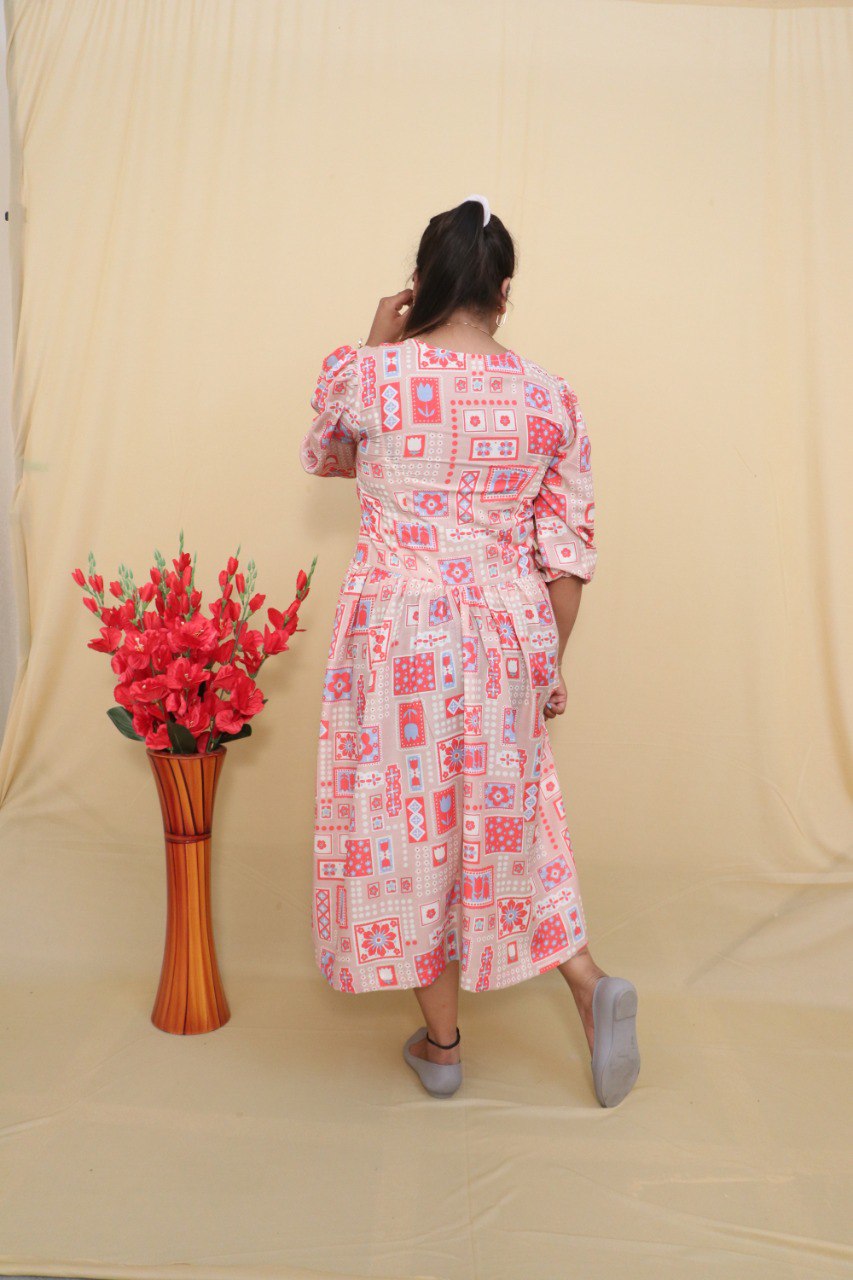 How adorable is this Alankar printed midi dress? Designed in a breathable crepe fabric,