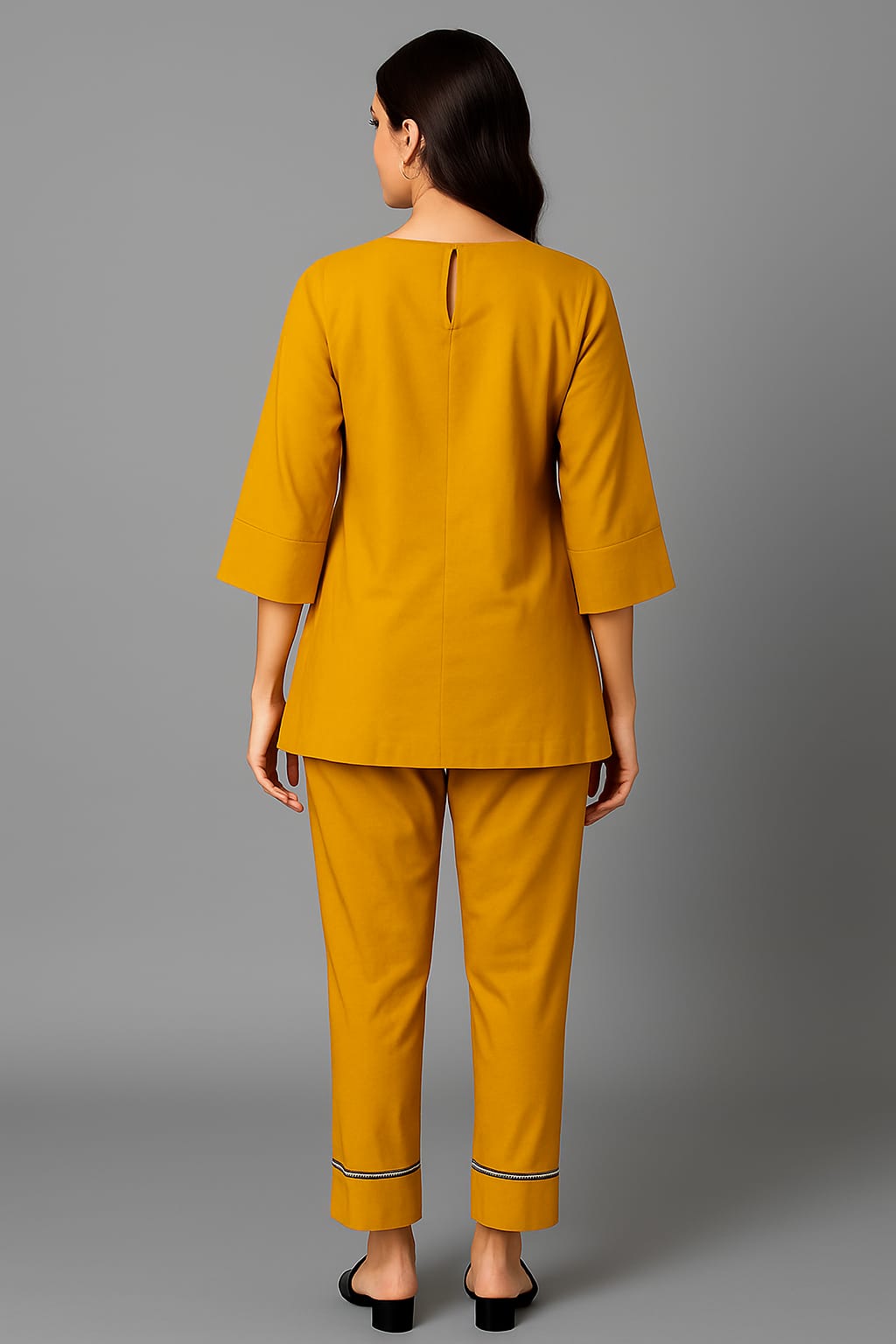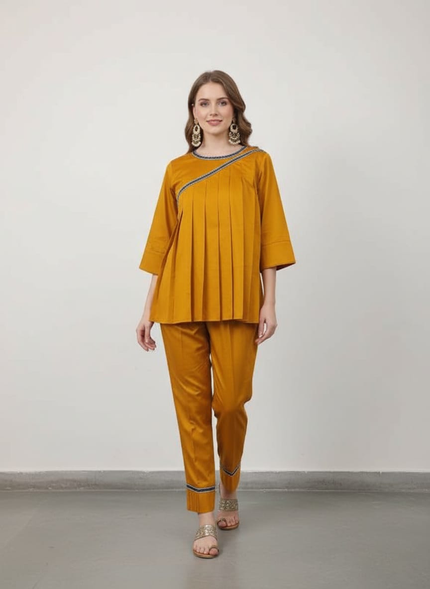 This stylish Mustard Yellow Pleated Co-Ord Set is designed in a rich mustard yellow shade,