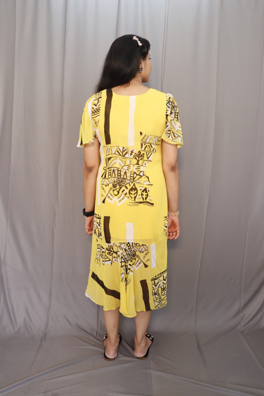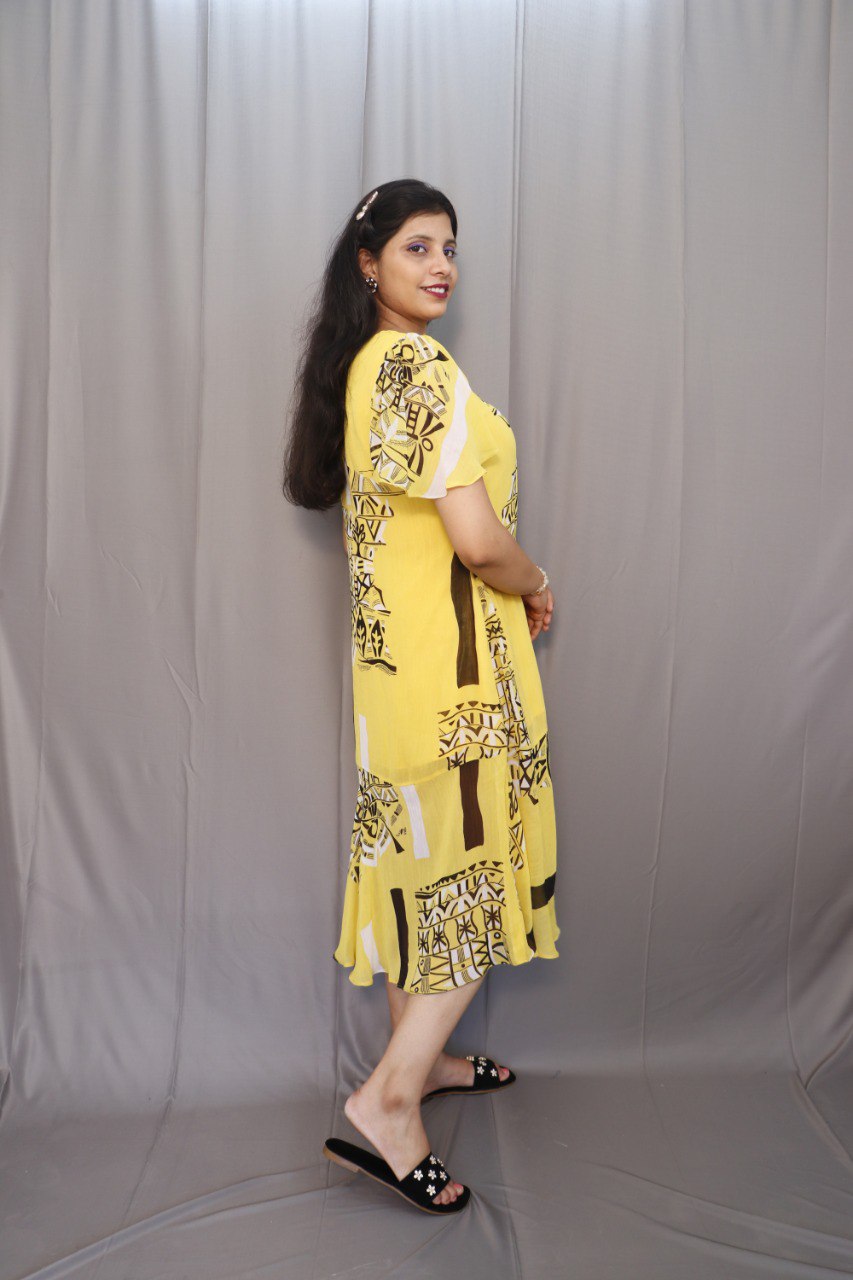 The Ziba Dress is a georgette midi with a square neckline and bell sleeve. It features button detailing down the front and a subtle slit at the hem — an easy, elegant pick for daytime events and casual evenings.